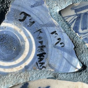 Theo Kortekaas (1932-2021) Collage met antiek Delfts Blauw keramiek en antiek glas – 1990 – Unica