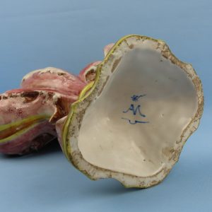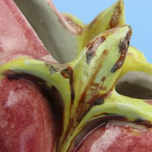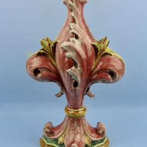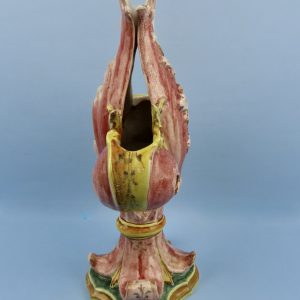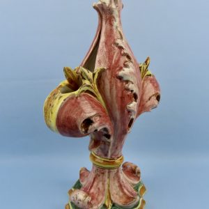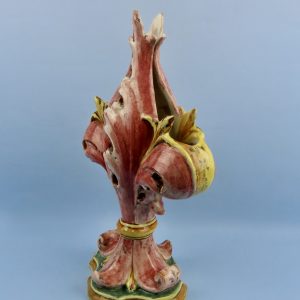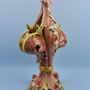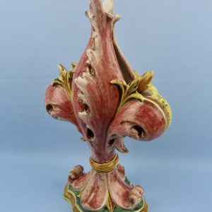 Zeldzame majolica vaas in de vorm van de Florentijnse lelie, de Fleur de Lys, gemaakt door Angelo Minghetti in de tweede helft van de 19e eeuw.