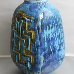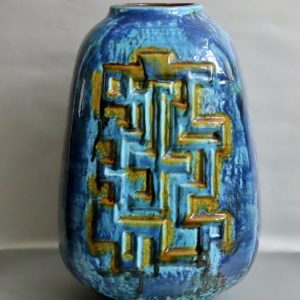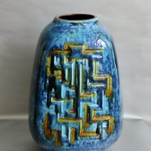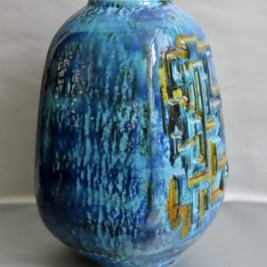 Carstens Tönnieshof Duitsland – jaren ’60 vaas met reliëf en turquoise/ zeegroen verlopend hoogglans glazuur.