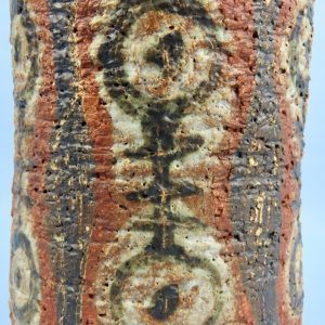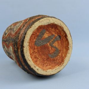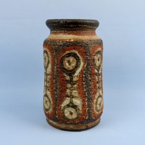 Zeldzaam mooi exemplaar deze abstracte aardewerk vaas met aardse kleuren w.o. zwart en goud in een Cobra-achtige stijl. Gemaakt rond het midden van de 20ste eeuw.