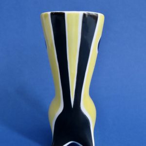 Zwart-geel geglazuurde aardewerk vaas die aan een insect doet denken en daarom de naam Hornet ofwel Horzel heeft gekregen. Laat in de jaren ’60 ontworpen door János Török (1932 – 1996) voor Zsolnay in Hongarije.