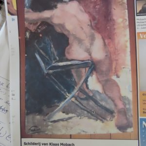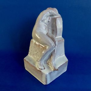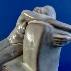 Geglazuurde plastiek van naakte vrouw gemaakt door Klaas Mobach II. Het stuk stam uit eind jaren ’40. In uitstekende conditie – 18 cm hoog x 13 cm diep.