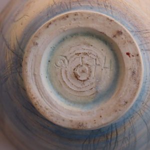 De vaas is gemerkt aan onderzijde en gedateerd: ’74. Dit was de periode waarin zij al weg was bij de Experimentele afdeling van De Porceleyne Fles te Delft waar zij werkte van 1956-1962 en in Petten haar atelier had.