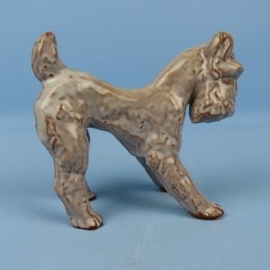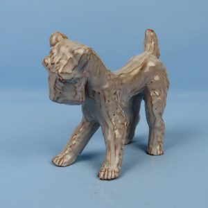 Wit geglazuurd aardewerk plastiek van een hond, ontwerp Klaas-II (1893-1976) – ca.1938, uitvoering Mobach / Utrecht.