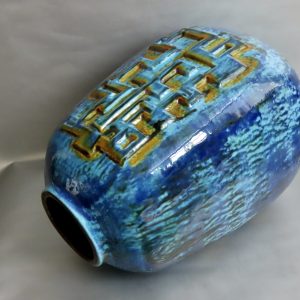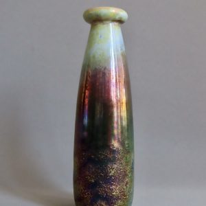 Deze unica vaas met geweldig regenboogglazuur is ontworpen en uitgevoerd door Johan Soesbergen en gesigneerd met JS.