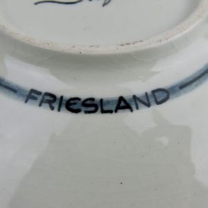 Keramisch bord ontworpen door Herman Sanders voor de Porceleyne Fles. Dit bord maakt deel uit van de serie provinciën en is bord Friesland. Herman Sanders ontwierp de herkenbare Sandelfo reeks die werd geproduceerd tussen 1957-1977 en was van 1948-1984 werkzaam bij de Porceleyne Fles als ontwerper en plateelschilder.