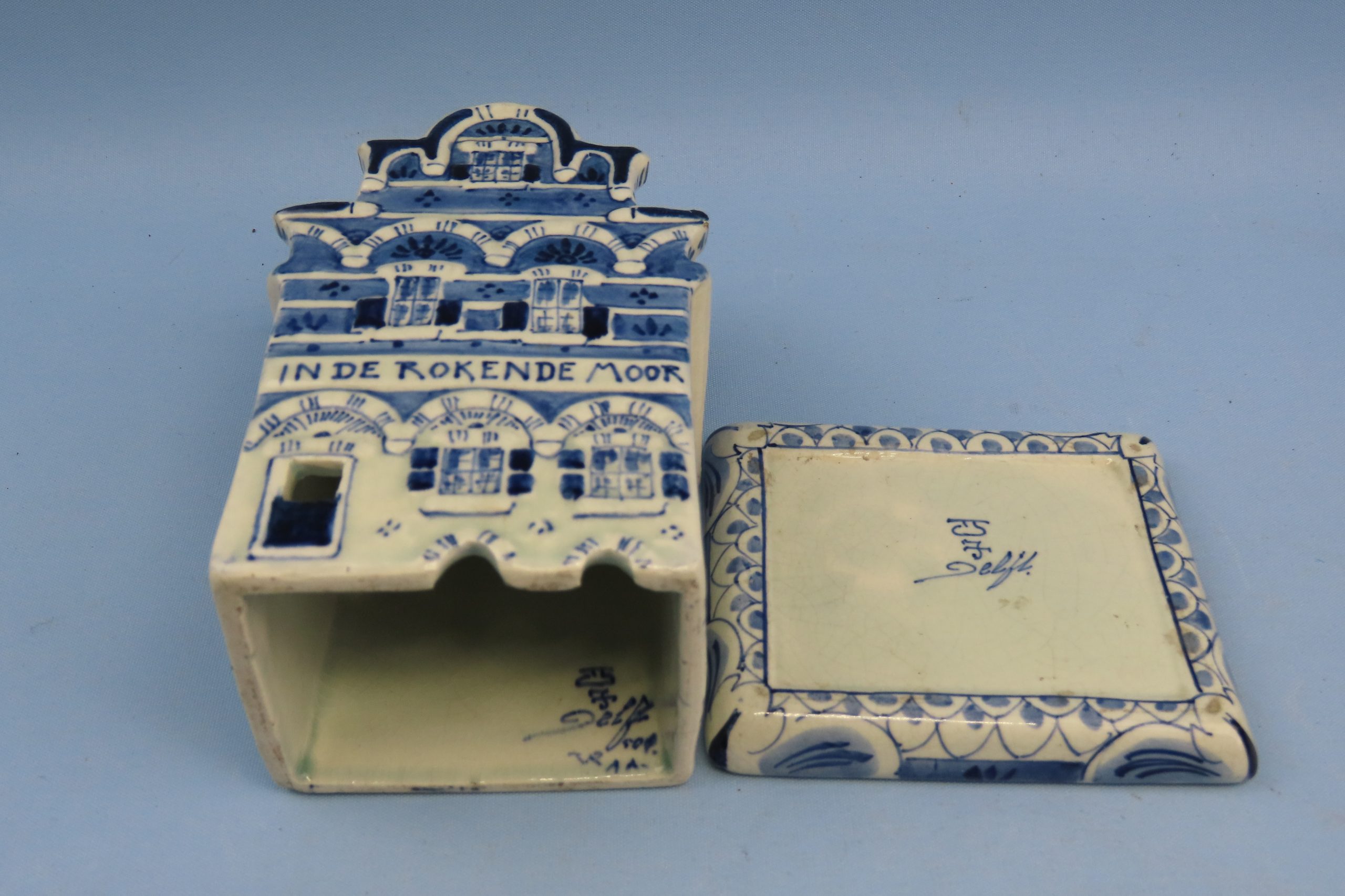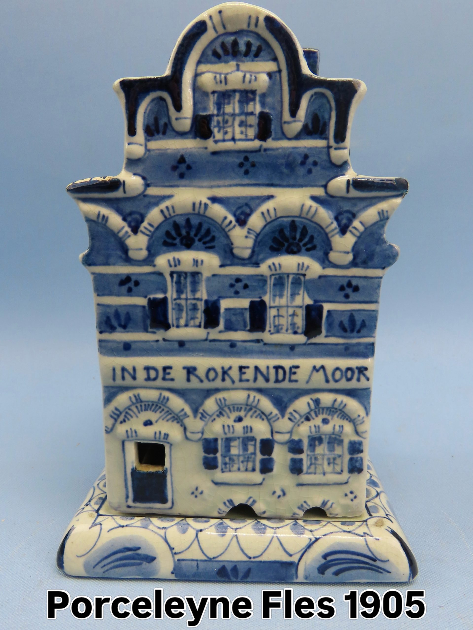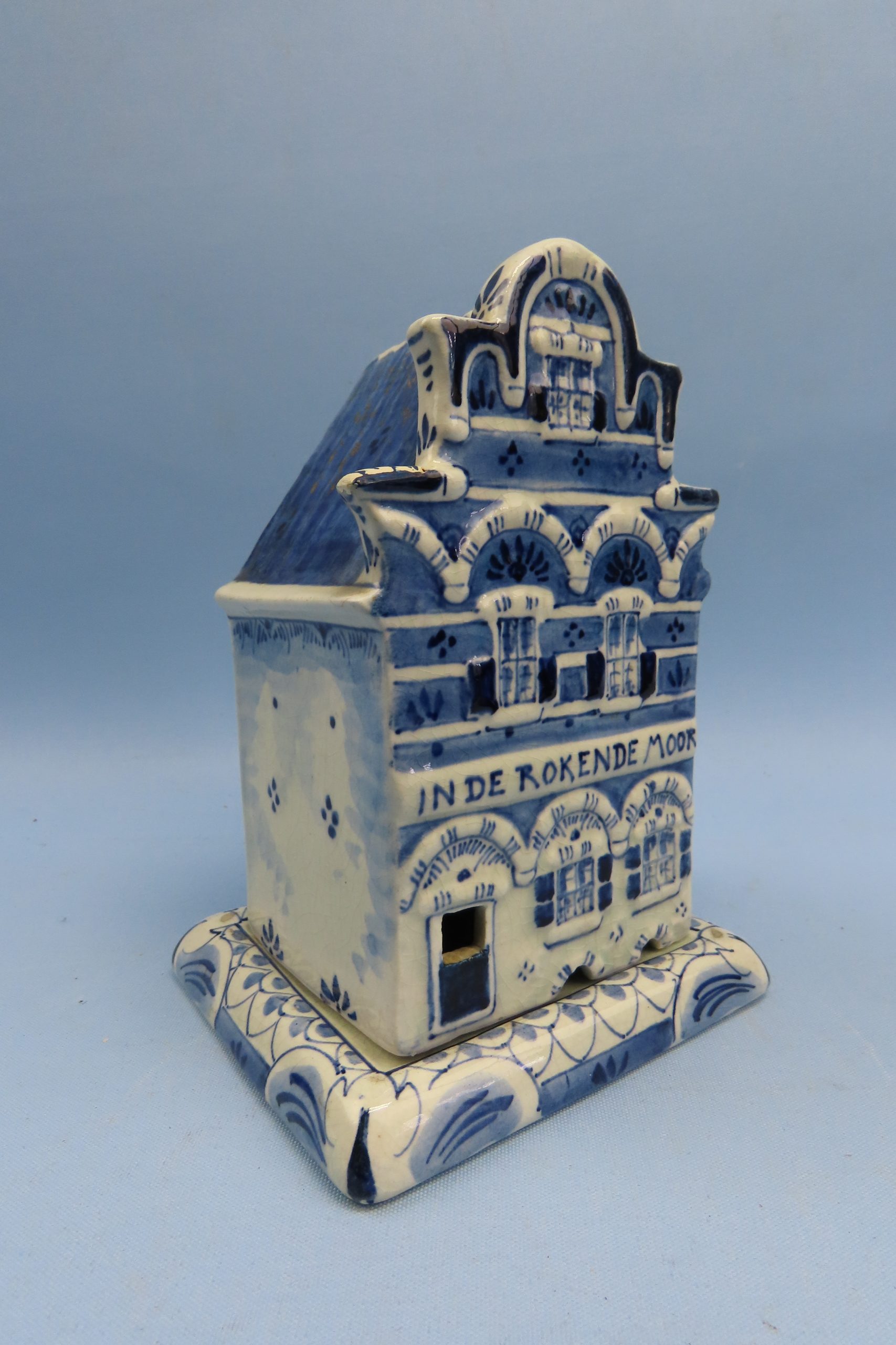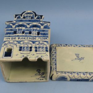 Porceleyne Fles – Royal Delft – In de Rokende Moor , wierookbrander – porselein Amsterdams huis in uitstekende staat en duidelijk gemerkt.