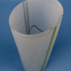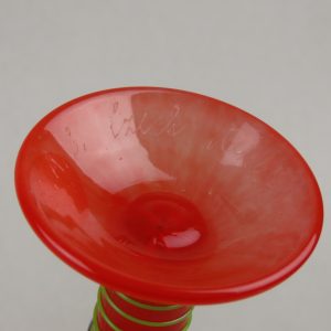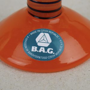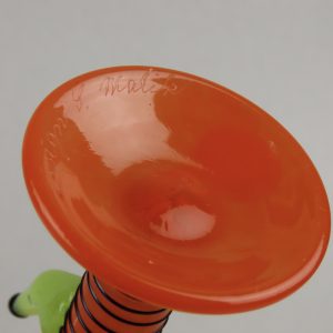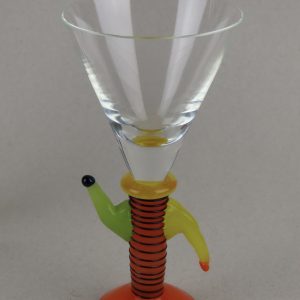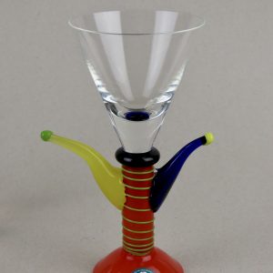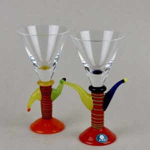 Twee design glazen in Memphis Group style ontworpen en uitgevoerd door Shafaq Malik eind vorige eeuw in Tsjechië voor Barovier & Toso. Beide glazen zijn in uitstekende originele staat en onderop gesigneerd en dragen de sticker van B.A.G.