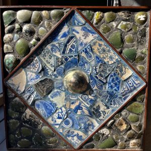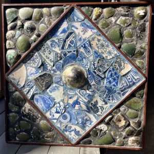 Theo Kortekaas (1932-2021) Collage met antiek Delfts Blauw keramiek en antiek glas – 1990 – Unica