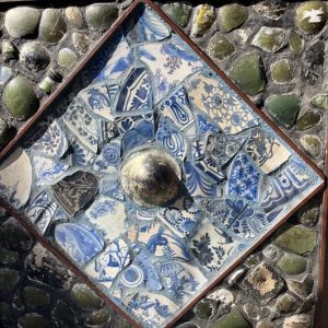 Theo Kortekaas, collage, antiek Delfts Blauw, antiek glas
