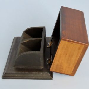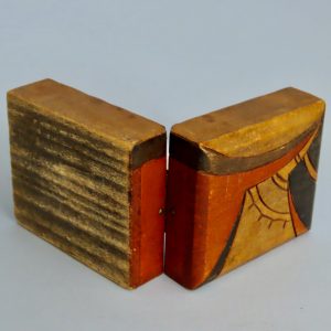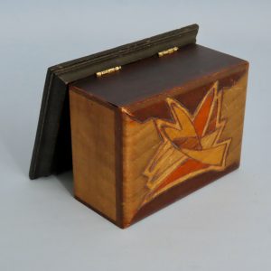 Twee fraaie houten, gebrande en beschilderde Amsterdamse School / Art Deco postzegeldoosjes. Prachtige kunstnijverheid uit Nederland in zeer goede conditie.