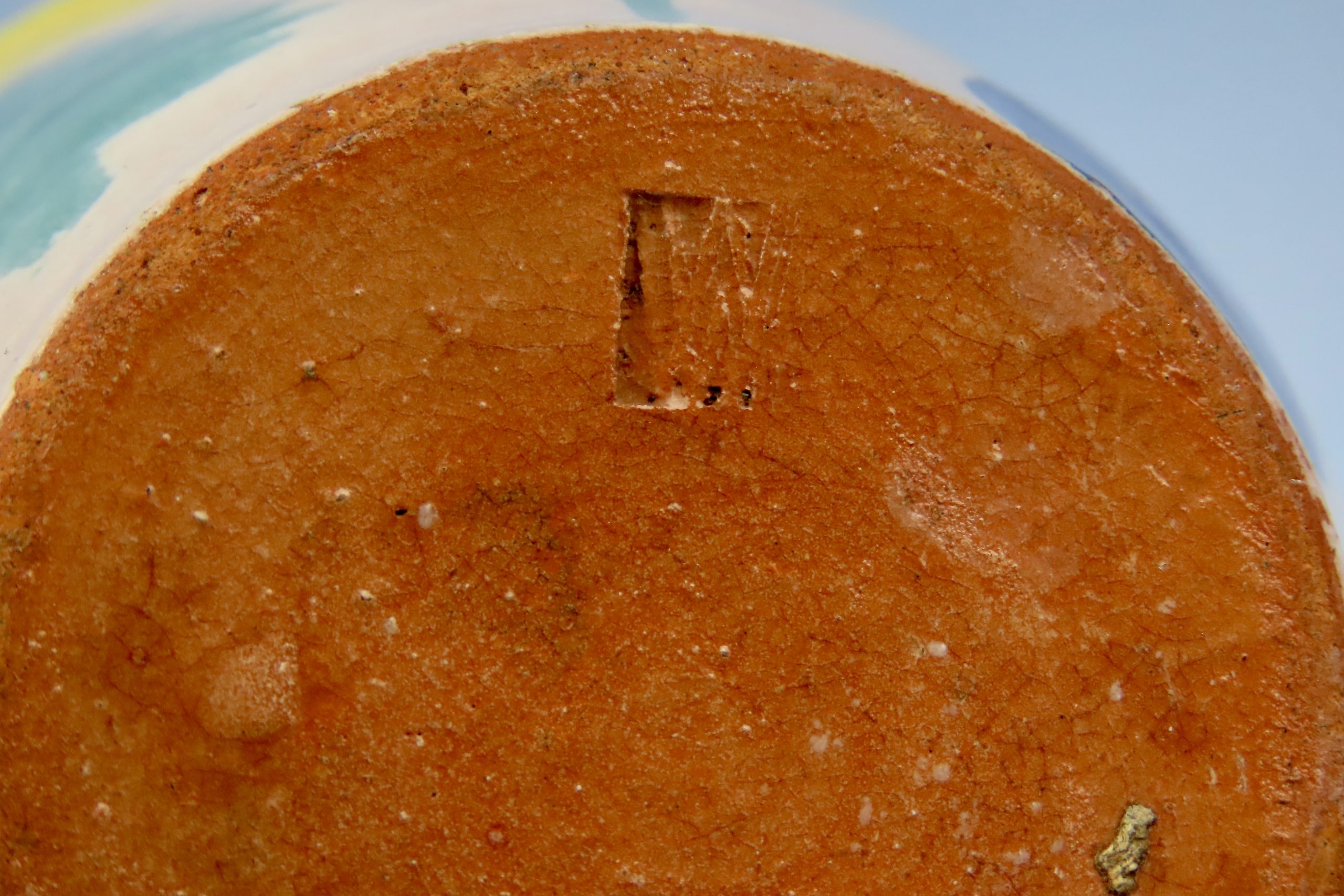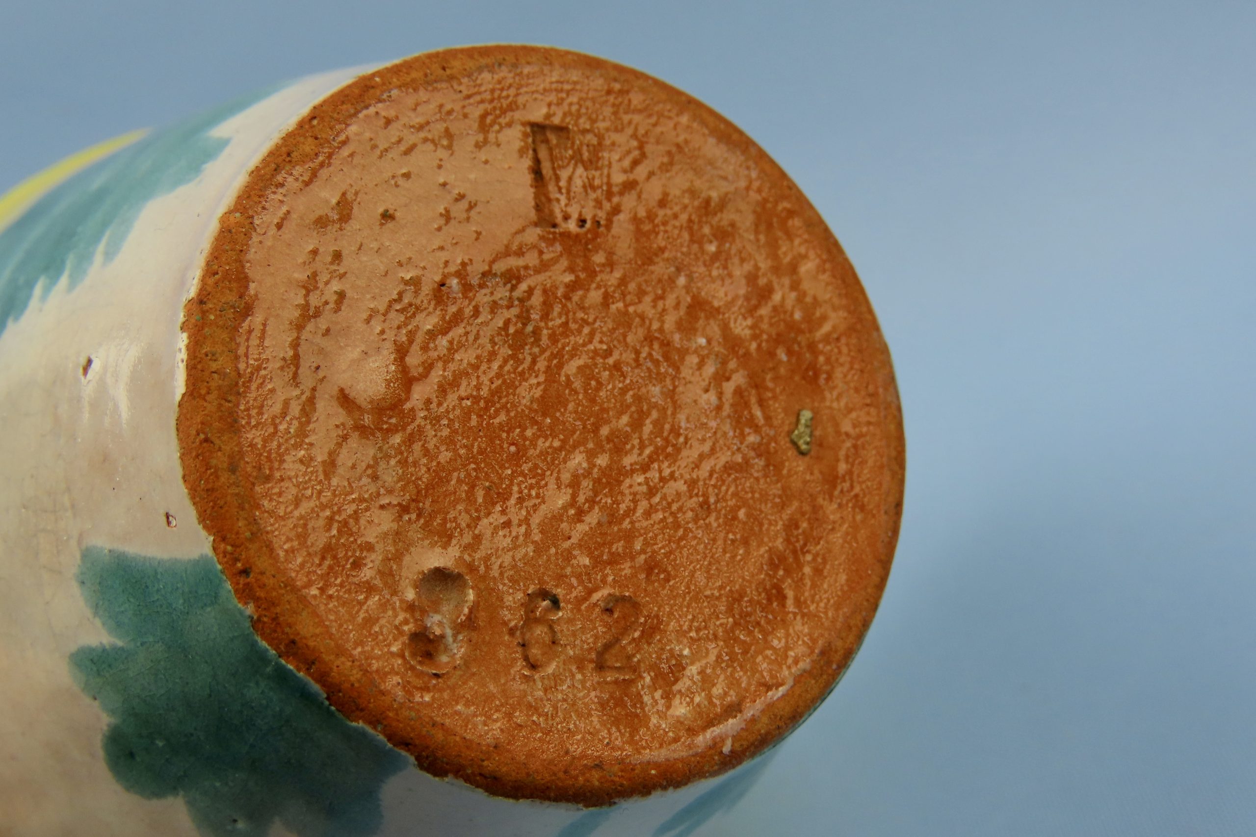 Beautiful and very rare glazed earthenware planter with a naive floral design. The pot is in very good condition and marked with the WW stamp of the Wiener Werkstätte and the number 862.
