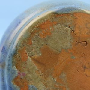 Art Deco oorkan met stroomglazuur in blauw en aardtonen gemaakt rond 1919 door Willem Coenraad Brouwer.